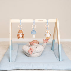 The baby gym develops hand-eye coordination, improves motor skills, and stimulates the senses every time your little one reaches for one of the toys.